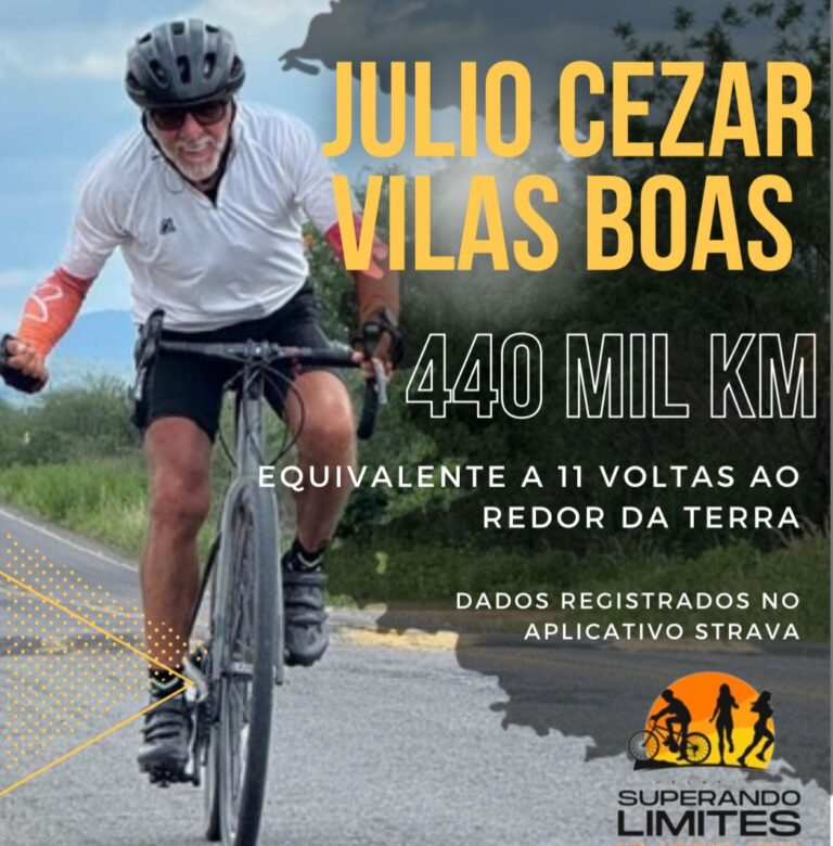 O ciclista jacobinense Júlio Cezar Vilas Boas alcançou a incrível marca de 440 mil quilômetros pedalados, equivalente a 11 voltas ao redor da Terra.