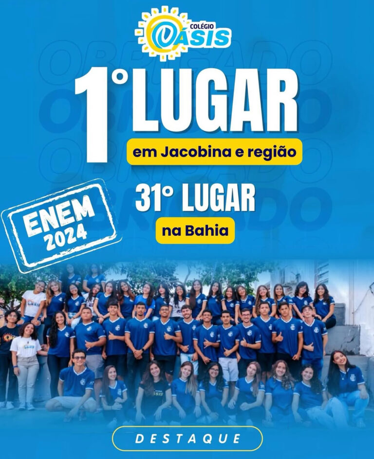 O Colégio Oásis, 1º lugar no Ensino Médio de Jacobina no ENEM – Exame Nacional do Ensino Médio – e 31º lugar em todo o estado da Bahia, agora busca novas conquistas.