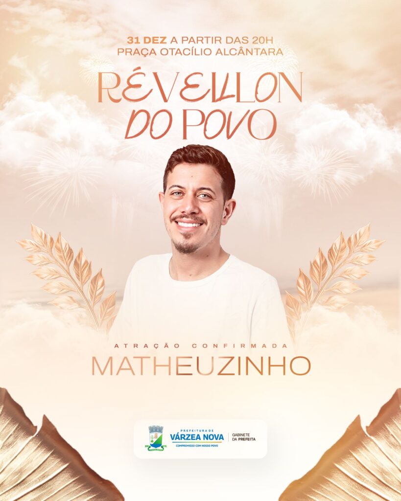 A Prefeitura de Várzea Nova anunciou, nesta quinta-feira, 04/12, a programação oficial do Réveillon do Povo, que será realizado no dia 31 de dezembro, a partir das 20h, na Praça Otacílio Alcântara. O evento marca a retomada das festividades de fim de ano no município e promete reunir moradores e visitantes para celebrar a chegada de 2026.
