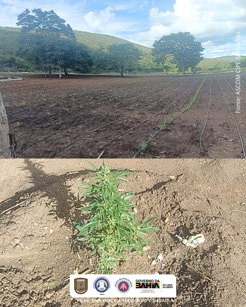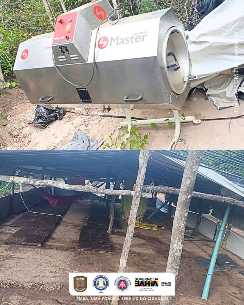 Cessados os disparos as guarnições se aproximaram taticamente e encontraram uma grande plantação de maconha com aproximadamente 60 (sessenta) mil pés de maconha com poucos dias de transplantados, uma sementeira tipo estufa contendo tabuleiros de mudas com aproximadamente 16 (dezesseis) mil plantas, 94 (noventa e quatro) quilos de maconha seca pronta para comercialização, uma máquina industrial marca/modelo MASTER Dry 800, utilizada para o corte processamento das flores de Cannabis Sativa, uma seladora a vácuo, duas balanças de precisão, grande quantidade de sacos para acondicionamento e embalagem da droga, vários poços artesianos e equipamentos de irrigação espalhados pela propriedade.