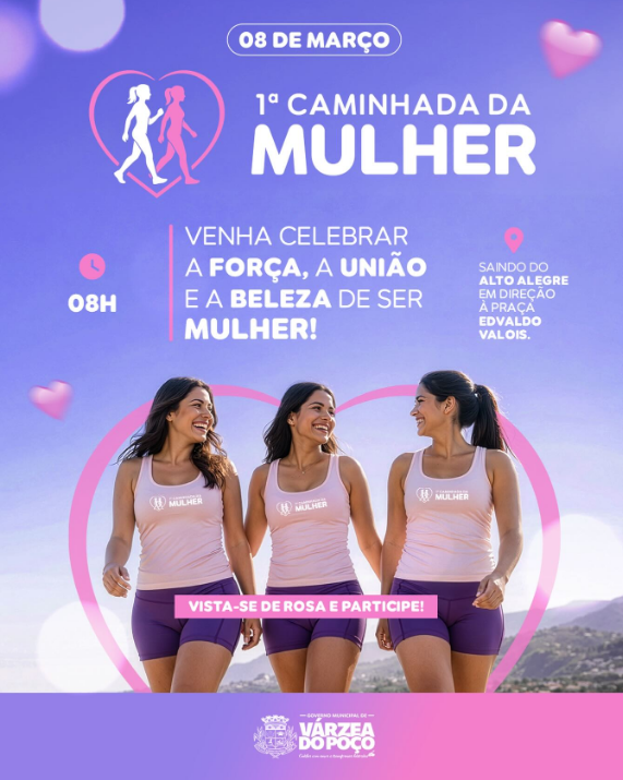 A Prefeitura de Várzea do Poço promoverá no próximo domingo, 08 de março, Dia Internacional da Mulher, a 1ª Caminhada da Mulher.